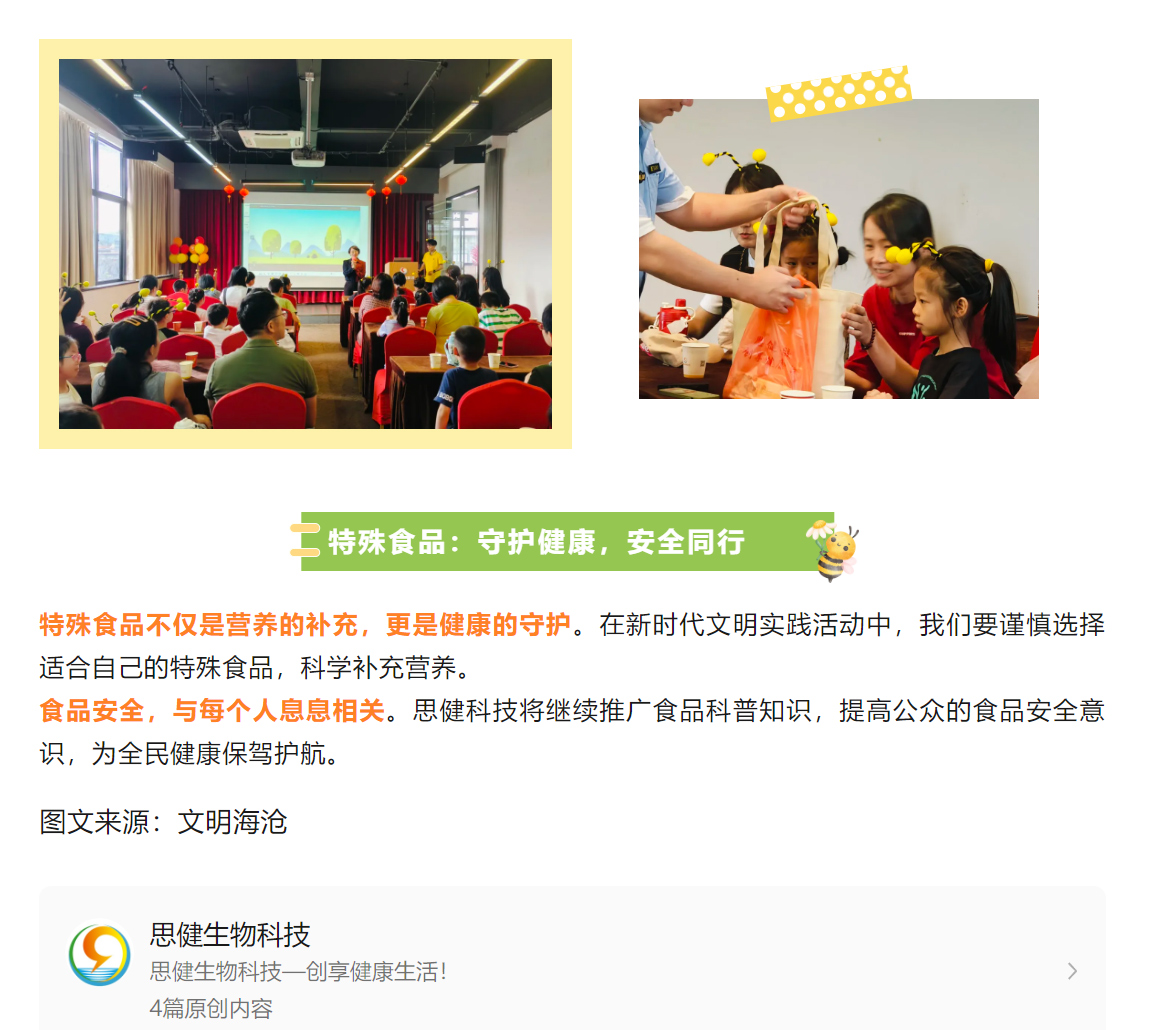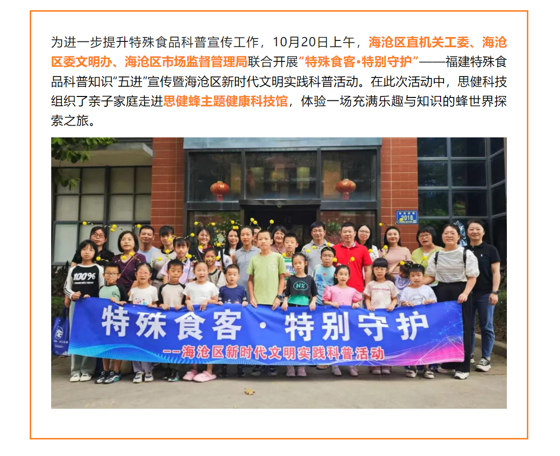 特殊食品知多少?這場活動甜蜜又有料….福建特殊食品科普知識“五進”宣傳暨海滄區(qū)新時代文明實踐科普活動走進思健蜂主題科技館